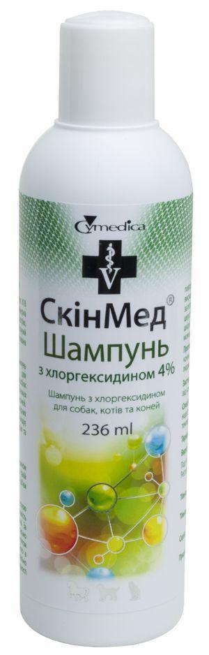 СКИНМЕД ШАМПУНЬ з хлоргексидином 4 % - для лікування шкіри та шерсті у собак, кішок і коней, 236 мл